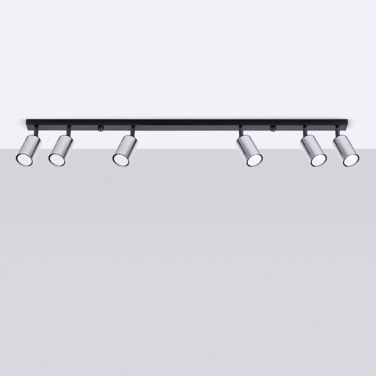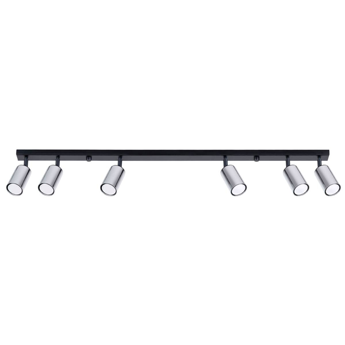 Plafond WINX 6L noir/chrome + 6x ampoule LED GU-10 3000K Warm 7W 510lm