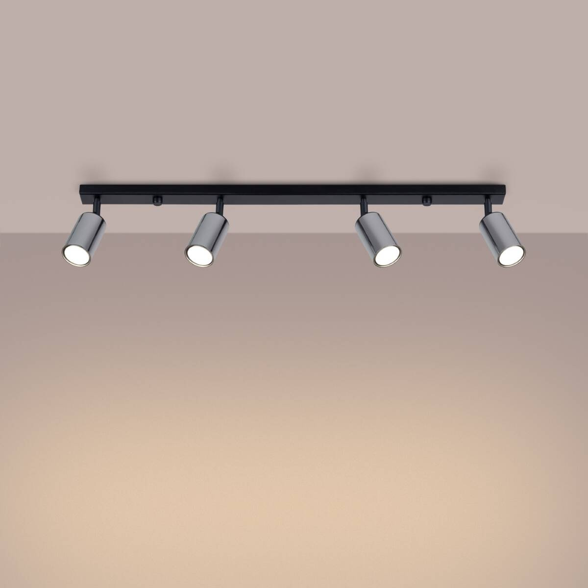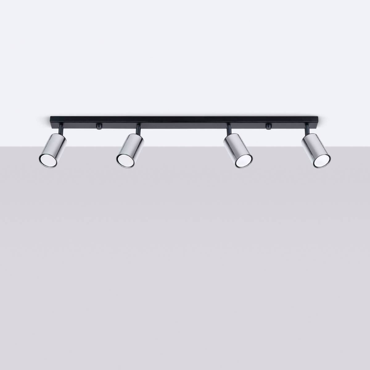 Plafond WINX 4L noir/chrome + 4x ampoule LED GU-10 4000K froid 7W 530lm