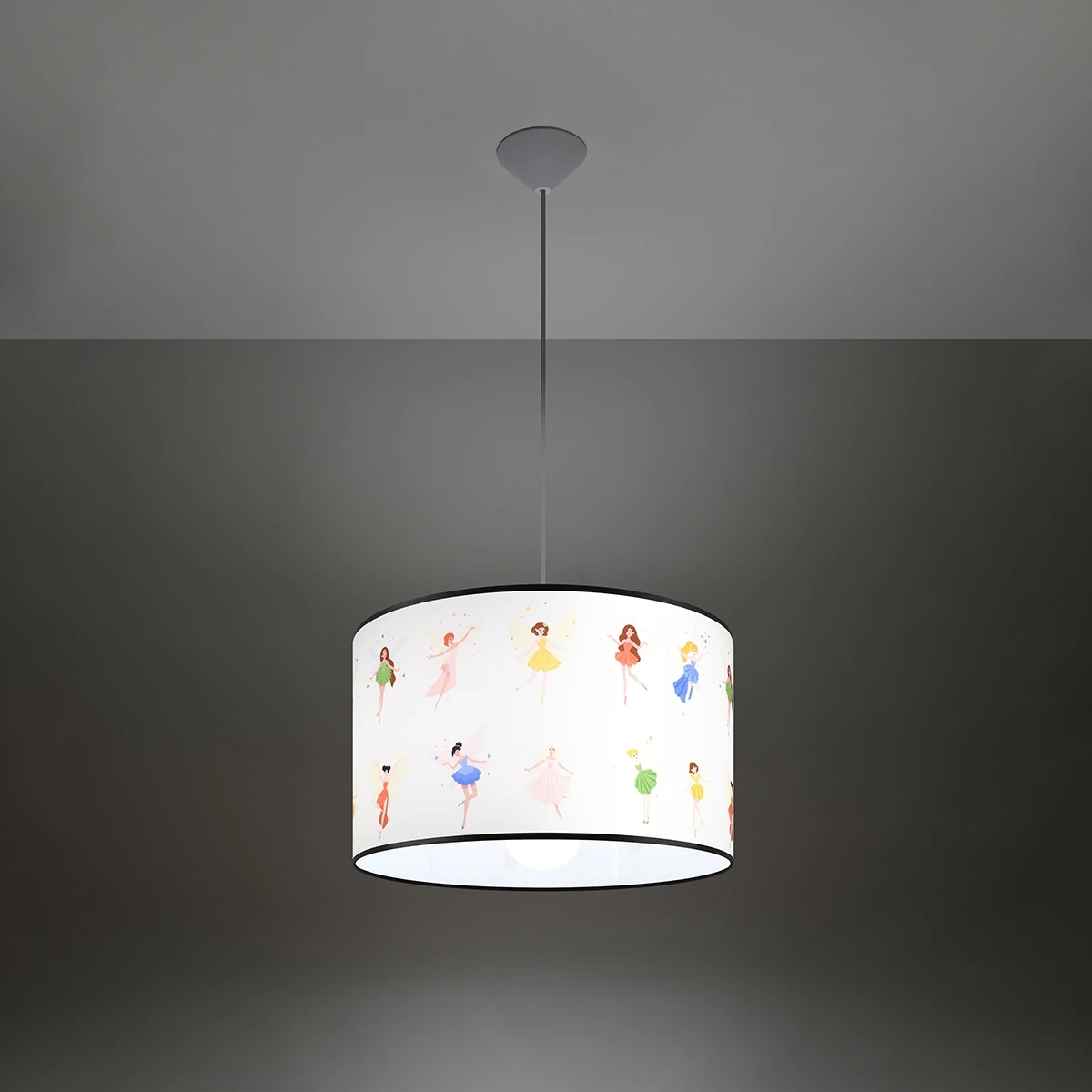 La lampe suspendue Fairy pour les chambres d'enfants est disponible en 2 tailles : avec un diamètre d'abat-jour de 30 et 40 cm. Cela vous permet de mieux l'adapter à la taille de la pièce. Rien ne vous empêche de créer des compositions lumineuses à partir de plusieurs lampes - autant d'idées, autant de possibilités !
