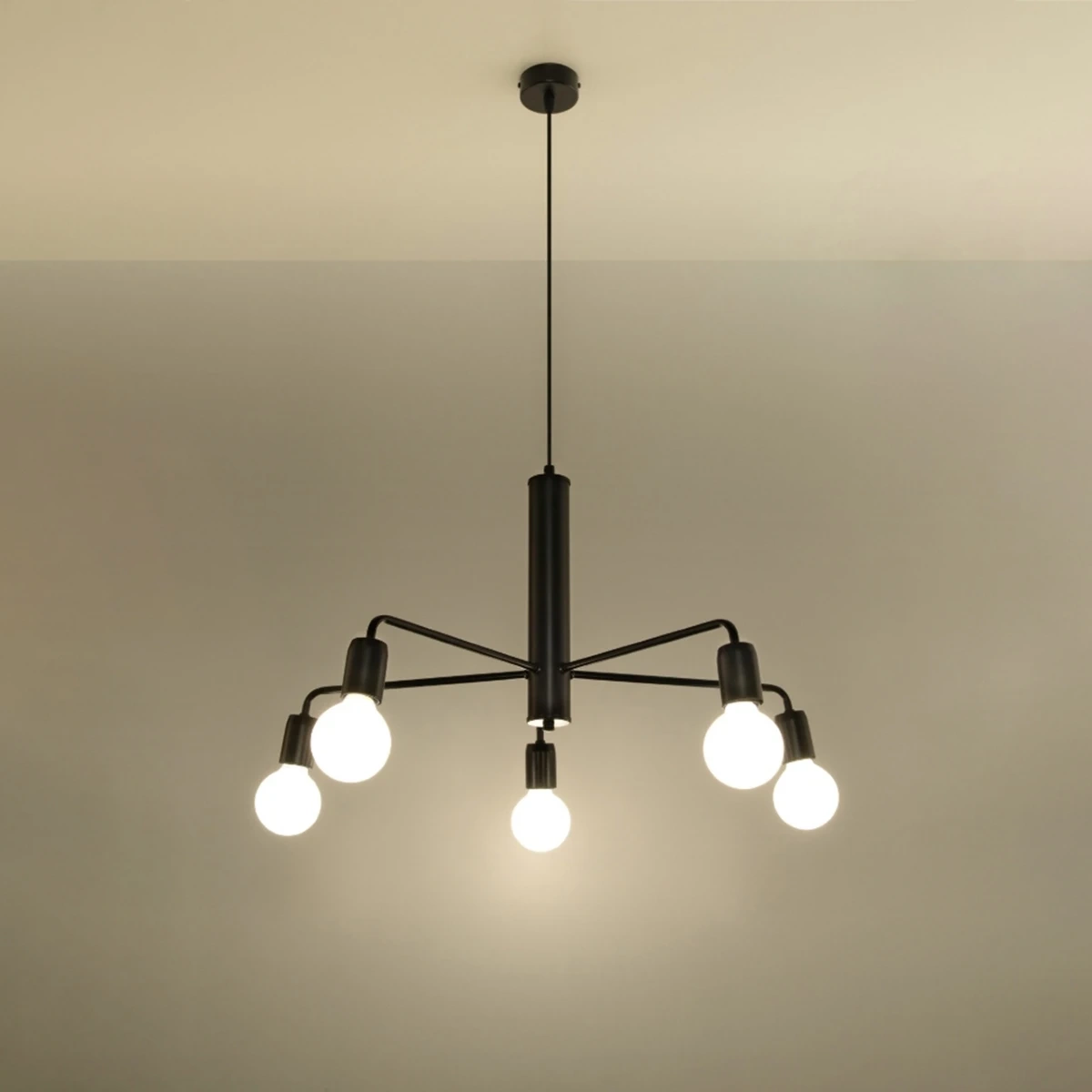 Absence d'abat-jours, acier brut et noir impénétrable - une telle combinaison fait impression! Les espaces industriels et loft adoreront cette lampe suspendue. Son minimalisme complétera parfaitement l'ambiance des pièces dans ces styles bruts, et la lumière mettra magnifiquement en valeur la décoration.