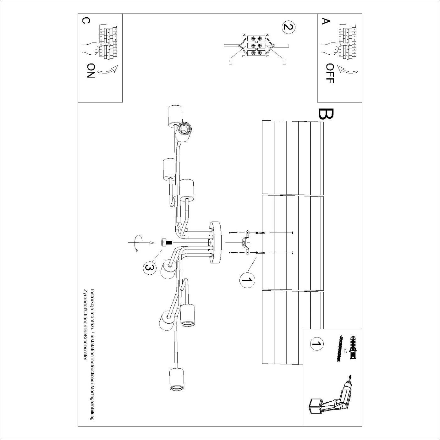 En fonction de la version - applique ou lustre à six ou huit bras - TIMBO offre l'éclairage parfait dans n'importe quelle pièce. La possibilité d'utiliser des ampoules E27 interchangeables permet une liberté totale dans le choix de la puissance lumineuse et de la couleur, vous permettant de créer l'atmosphère parfaite.