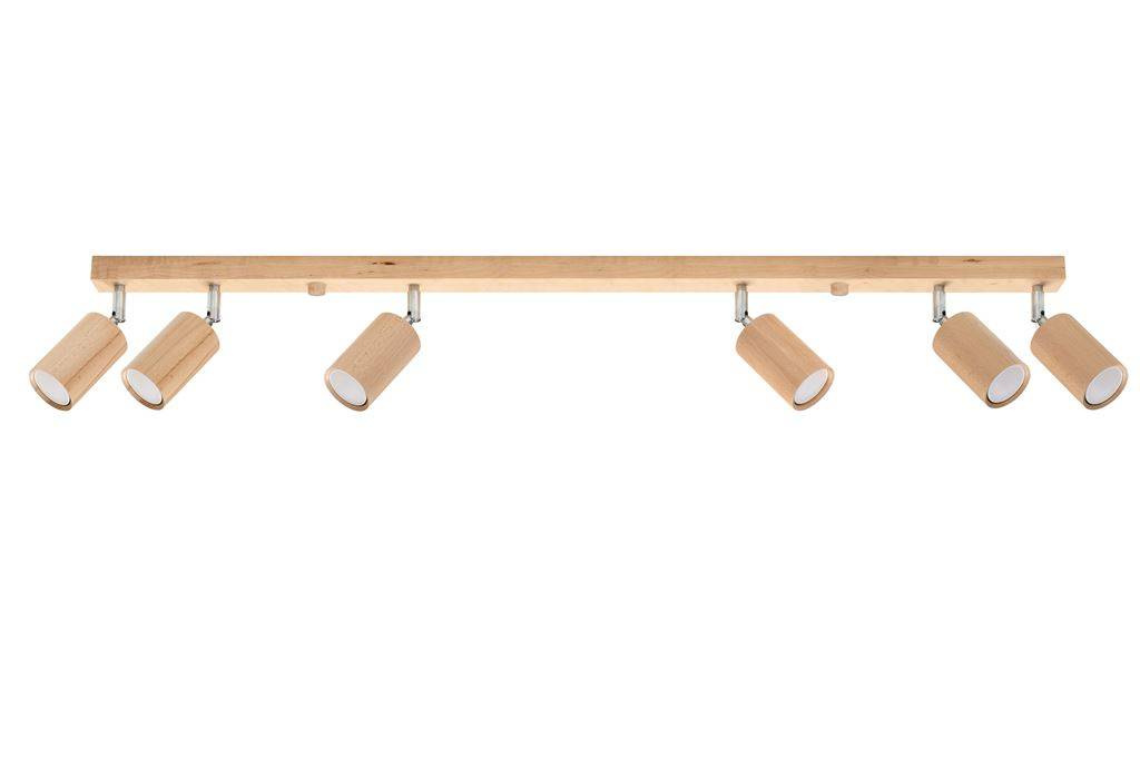 Plafond BERG 6 bois naturel + 6x ampoule LED GU-10 4000K Froid 7W 630lm