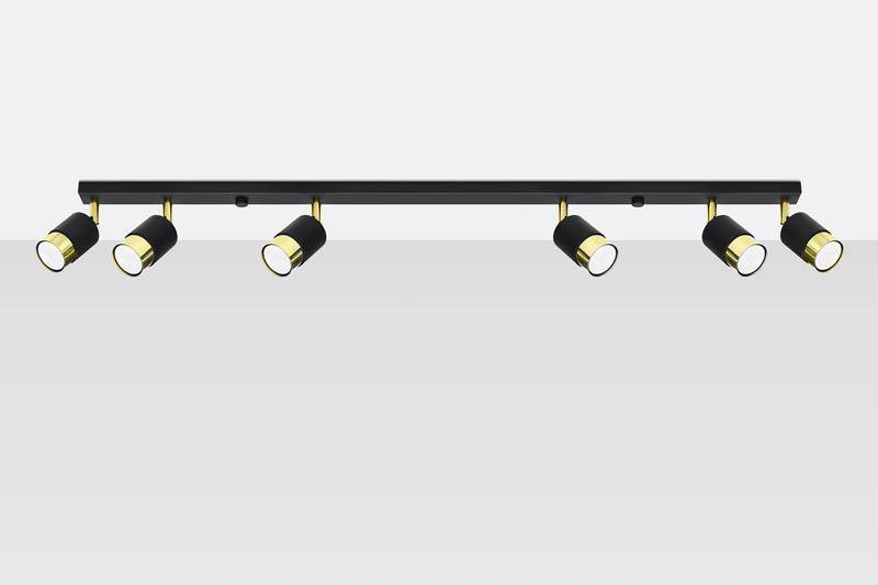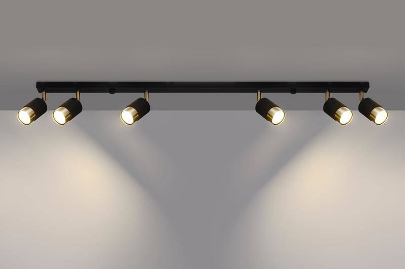Plafond NERO 6 noir/or + 6x ampoule LED GU-10 3000K Warm 7W 620lm