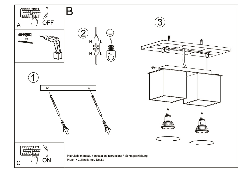 Plafond QUAD 2 gris + 2x ampoule LED GU-10 3000K Warm 7W 620lm