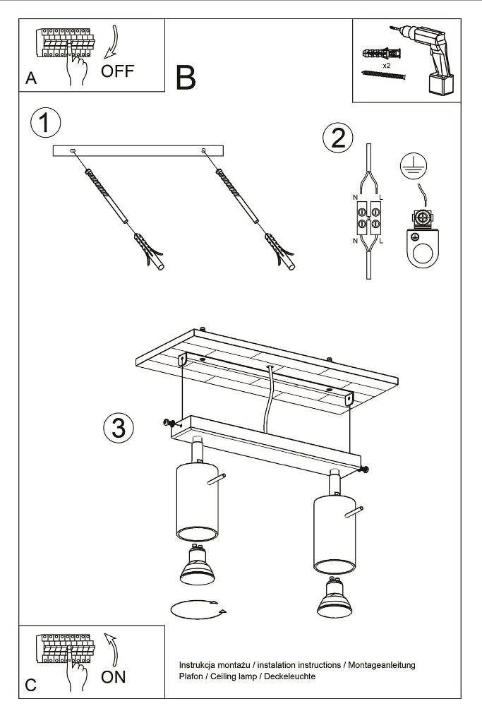 Plafond RING 2 blanc + 2x ampoule LED GU-10 3000K Warm 7W 620lm