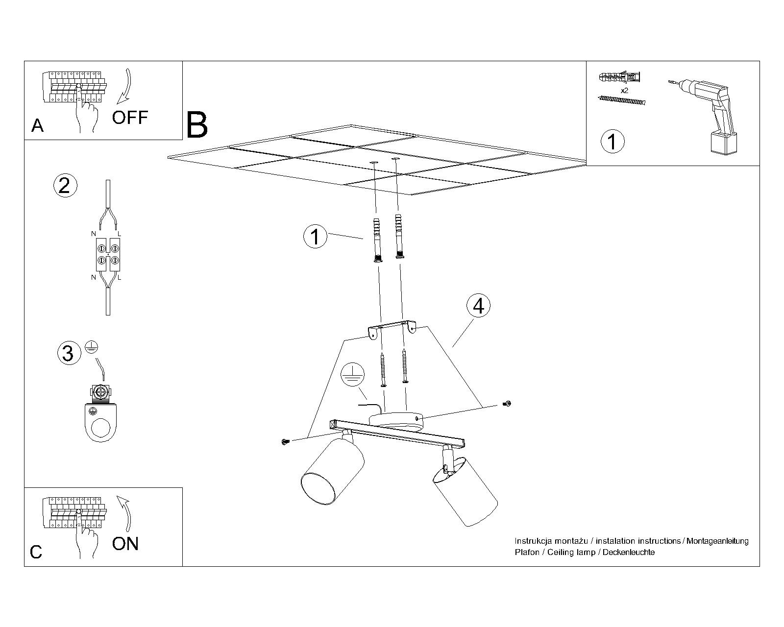 Plafond LEMMI 2 noir + 2x ampoule LED GU-10 3000K Warm 7W 510lm