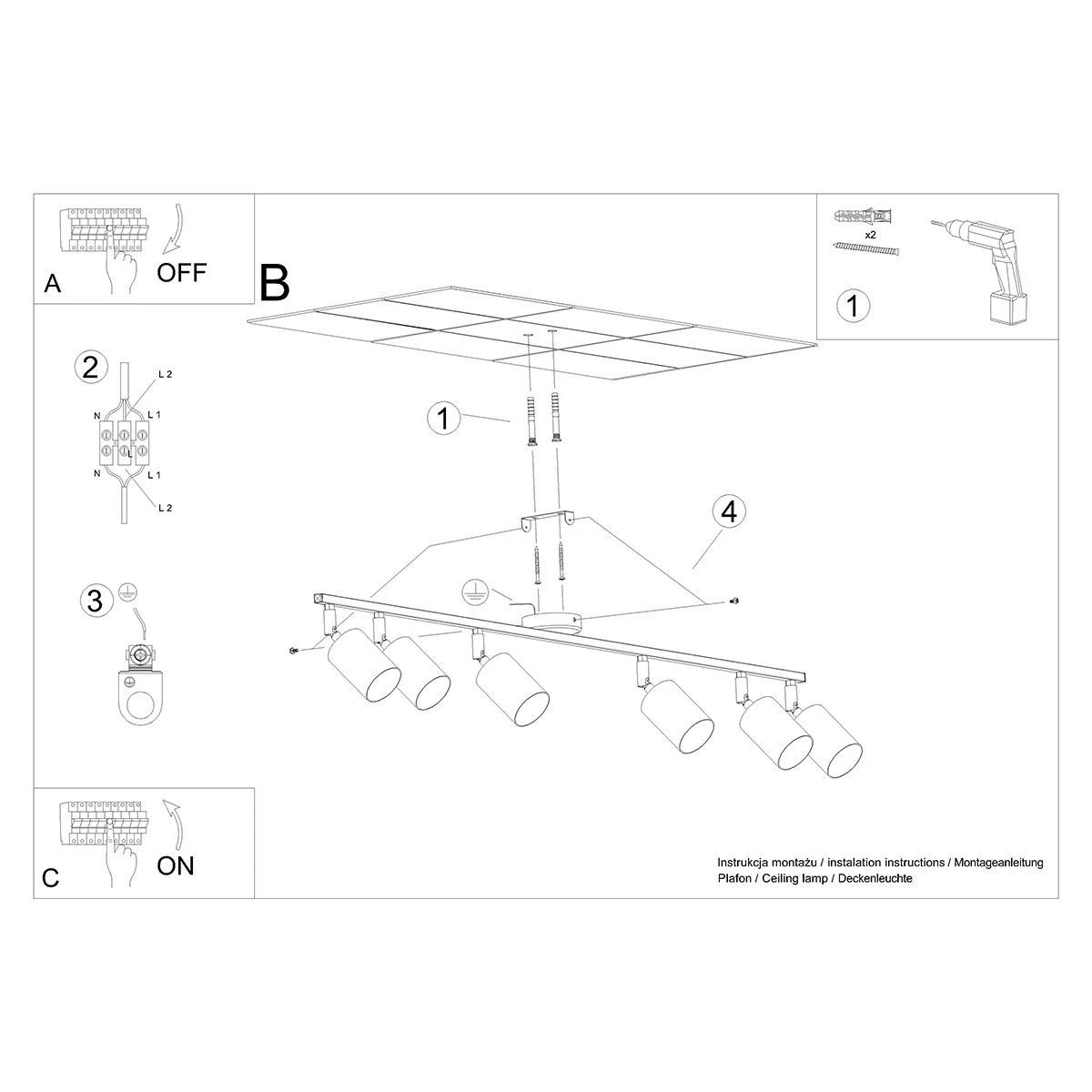 Plafonnier LEMMI 6L noir