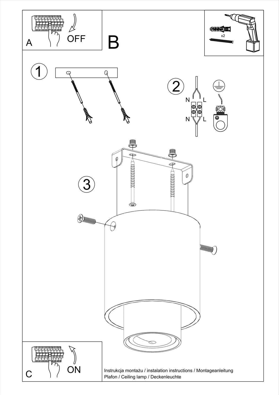 Plafond NESI noir + 1x ampoule LED GU-10 4000K froid 7W 530lm